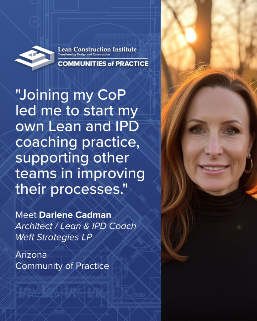 Meet Darlene Cadman, an Architect and Lean/IPD Coach with Weft Strategies LP, and an active member of LCI’s Arizona Community of Practice.