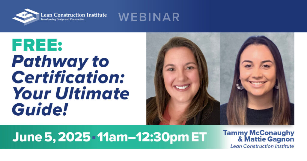 Join the D.C. Metro CoP in person or virtually on Thursday, May 29 to dive deeper into the “why” for Lean. This exclusive LCI education content will highlight key benefits such as higher owner satisfaction, better cost control, and improved project delivery timelines. The course will also examine Lean methodologies like Integrated Project Delivery (IPD), Last Planner System® (LPS®), and continuous improvement strategies.