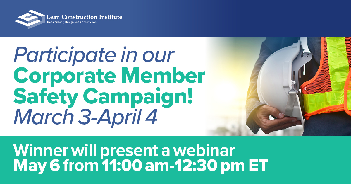LCI corporate members: submit an abstract for our LCI Safety Week in Construction campaign for a chance to present a webinar about your Lean safety journey. Share how your organization integrates Lean principles to enhance safety and impact projects.