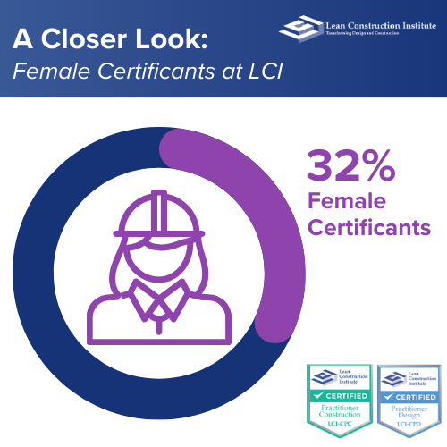 Women are making an impact in Lean Construction, and our certification program reflects that. We’re proud to share that 32% of LCI Certificants are female—a number that continues to grow as more women advance their careers with Lean expertise.