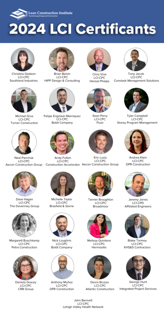 We’re proud to spotlight this year’s LCI certificants who have achieved their LCI-CPC (Certified Practitioner – Construction) or LCI-CPD (Certified Practitioner – Design) certifications! This milestone reflects their expertise and proven ability to implement Lean Project Delivery in real-world project settings. Their dedication to continuous improvement sets a strong example for the industry. Join us in celebrating their success and the lasting impact they’ll make across the industry.