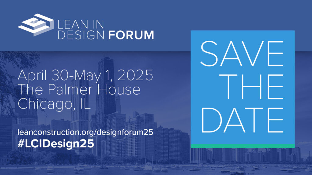 Save the Date for the 2025 Lean in Design Forum! Discover the power of Lean in the design phase at our upcoming event, April 30-May 1, Chicago! Join us for a dynamic exploration of industry-leading strategies designed to enhance efficiency and elevate project outcomes. Whether you’re an architect, engineer, designer, or involved in any aspect of the design process, this forum is tailored to meet your needs.