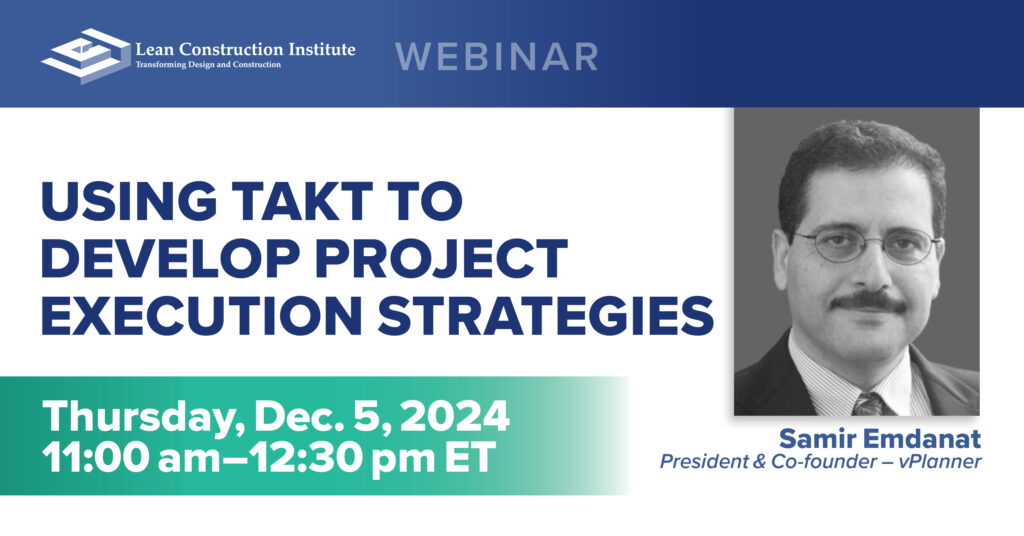 Join us today at 11am EST for a webinar on Using Takt to Develop Project Execution Strategies, where vPlanner President and Co-Founder Samir Emdanat will demonstrate innovative ways to integrate Takt Planning early in your project life cycle!