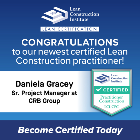 We are thrilled to recognize Daniela Gracey as a recent recipient of the LCI-CPC certification. With her deep commitment to Lean principles, Daniela represents the forward-thinking mindset necessary to address the challenges of modern design and construction. Her certification reflects her dedication to fostering collaboration, accountability, and continuous improvement within the industry.