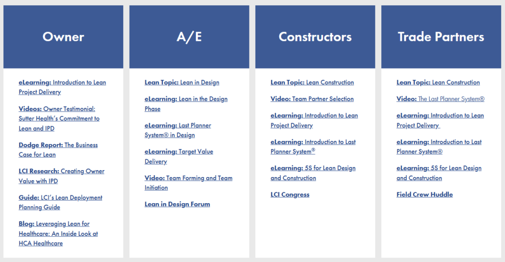 These resources include blog articles, videos, eLearning courses, webinars, past event presentations, and a variety of other materials from LCI’s extensive library to support your Lean learning journey.