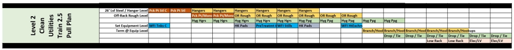 Pull planning is a core step for InterActive Planning sessions and the Last Planner System®. It starts with identifying the steps of work to be done, and the sequence those steps are to be completed. In the case of clean utilities, we selected a pull planning approach because of its qualities (see Figure 2). The clean utility train was a single zone, heavily populated with piping, electrical and equipment, and the layout was not conducive to a repeatable sequence since it was routed based on process engineering requirements.
