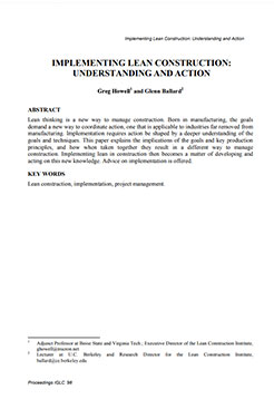 The Lean Construction Institute was formed in 1997 by Glenn Ballard and Greg Howell as a way to develop and disseminate new knowledge regarding the management of work in projects. They realized the construction industry had many of the same problems as those in the manufacturing industry, and began bringing Lean thinking into the built environment.