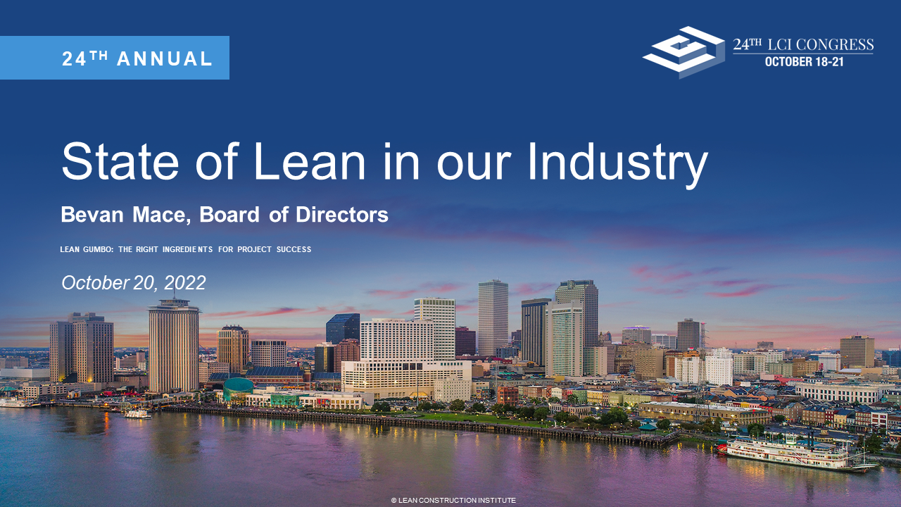 The State of Lean in Our Industry: LCI partnered in 2022 with Dodge Data & Analytics on a new study aimed at answering the age-old question of the degree to which the building industry is aware of and utilizing Lean Design and Construction practices across the country. Survey responses came from hundreds of owners, architects, engineers, GCs and trade contractors with experience in all types of building projects, from commercial to industrial to infrastructure.